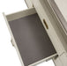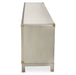 AICO Furniture Menlo Station TV Console in Eucalyptus KI-MENP081-123. Brighten up your space! The Menlo Station TV Console looks clean and casual in soft colors and campaign hardware. With a pale wood finish and brushed silver frames, your home will glint with the details that make a difference.