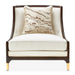 AICO Furniture Belmont Place Accent Chair in Espresso 9085834-CREAM-409. The Belmont Place Accent Chair is a masterpiece of elegant curves and refined detailing. Wrapped in a linen-like, stain-resistant fabric, the plush seat and back offer comfort and style. The rich espresso frame gracefully sweeps around the chair, highlighting the exquisite marbleized accent pillow and gold-tipped legs, creating a statement piece that's both contemporary and timeless.