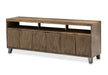 - Constructed with Acacia wood solids, a Mindy veneer in a Boardwalk finish, and a carved wave pattern