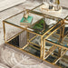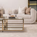 AICO Furniture Savannah Breeze 2pc Small Cocktail Table in Bright Gold LFR-SBRZ204-806. The Savannah Breeze Short Cocktail Table adds refined style and versatility to your living space. Designed as a sophisticated pair, the tables feature beveled glass tops offering a polished, elegant surface. A mirrored bottom shelf provides both functionality and a touch of glamour, perfect for displaying decor or keeping essentials close at hand. Framed in radiant gold, these tables can be used separately or combined with their larger counterparts to create a tailored centerpiece for your room.