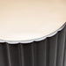 AICO Malibu Crest Round Chairside Table in Dark Espresso 9007226-412. Accents should stand out too! The Malibu Crest Round Chairside Table features a unique scalloped body and Burnished Gold details. Perfect beside your chaise lounge and sofa alike, this table gives you the eclectic elegance you're looking for.