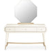 AICO La Rachelle Vanity Mirror in Medium Champagne 9034068-136. Find beauty in everything! The La Rachelle Mirror works with your needs, whether you're touching up your powder or tackling a new project. Store your necessities in the velvet-lined drawers and easily wipe the tabletop clean when you're finished!