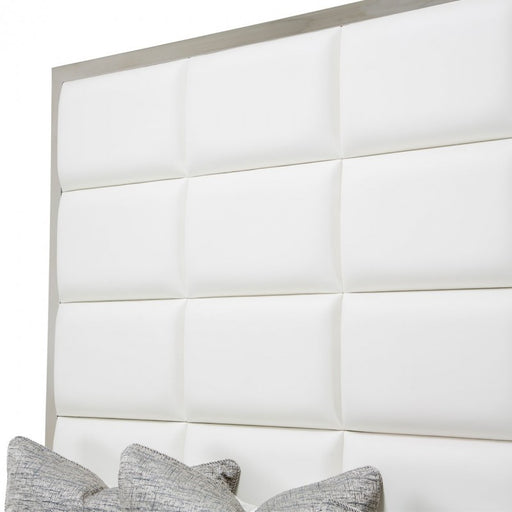 AICOState St Collection by Aico Furniture Glossy White finish Upholstered panels Includes USB port on each side of headboard Stainless steel frame fo...