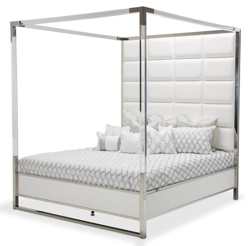 AICOState St Collection by Aico Furniture Glossy White finish Clear acrylic posts Stainless steel accents Stainless steel frame footboard Includes USB...