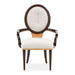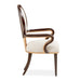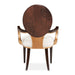 AICO Furniture Camellia Field Arm Chair (Set of 2) in Warm Pecan 9090004-400. With its graceful silhouette and thoughtfully crafted details, the Camellia Field Dining Arm Chair is a statement of refined comfort. The oval back, adorned with camellia marquetry, pairs beautifully with the warm pecan finish and antique gold accents. Upholstered in soft chenille, it combines luxurious materials with a supportive design, offering an inviting and sophisticated dining experience.