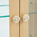 AICO Furniture Camellia Field Display Cabinet in Caramel 9090209T-134. Elevate your collectibles and fine dinnerware with the Camellia Field Display Cabinet. Designed to highlight every piece, its adjustable glass shelves and mirrored back reflect your collection beautifully. The integrated touch lighting system brings subtle illumination, creating an enchanting display. Below, two velvet-lined drawers provide concealed storage, ensuring your space remains organized and refined.