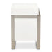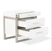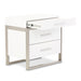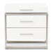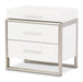 AICO Marquee Nightstand in Cloud White KI-MRQE040-108. Choose unique. The Marquee Nightstand is all about the balance between uniform and asymmetry. With an offset brushed stainless steel frame and tiered top drawer, you get the striking modern look with a refreshing twist.